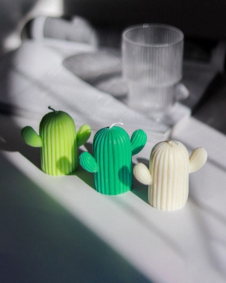 Minimal cactus-shaped candle with contemporary charm. A stylish décor piece for aesthetic, modern spaces.